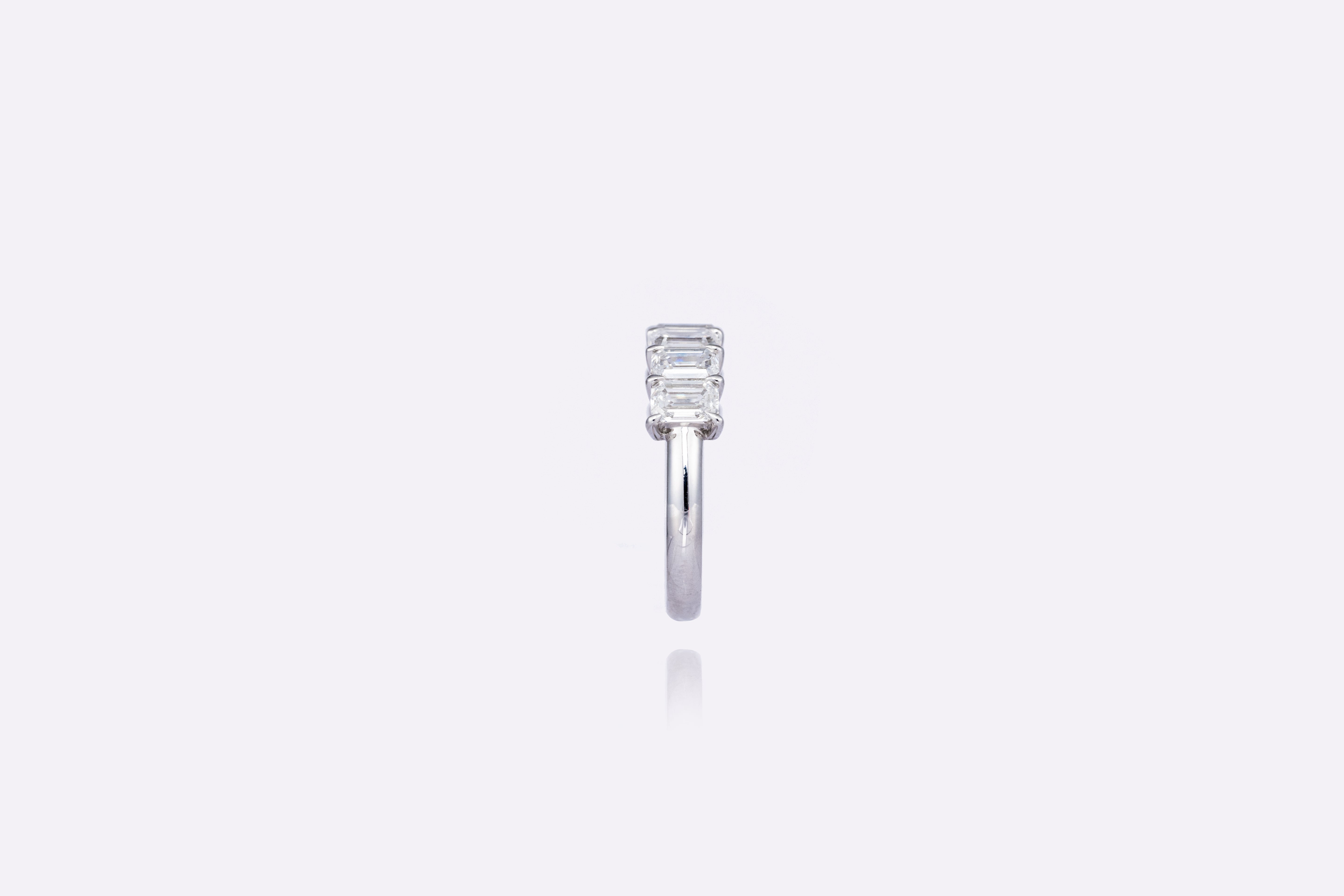 - Center Stones: 2-carat total weight of emerald-cut lab-grown diamonds
