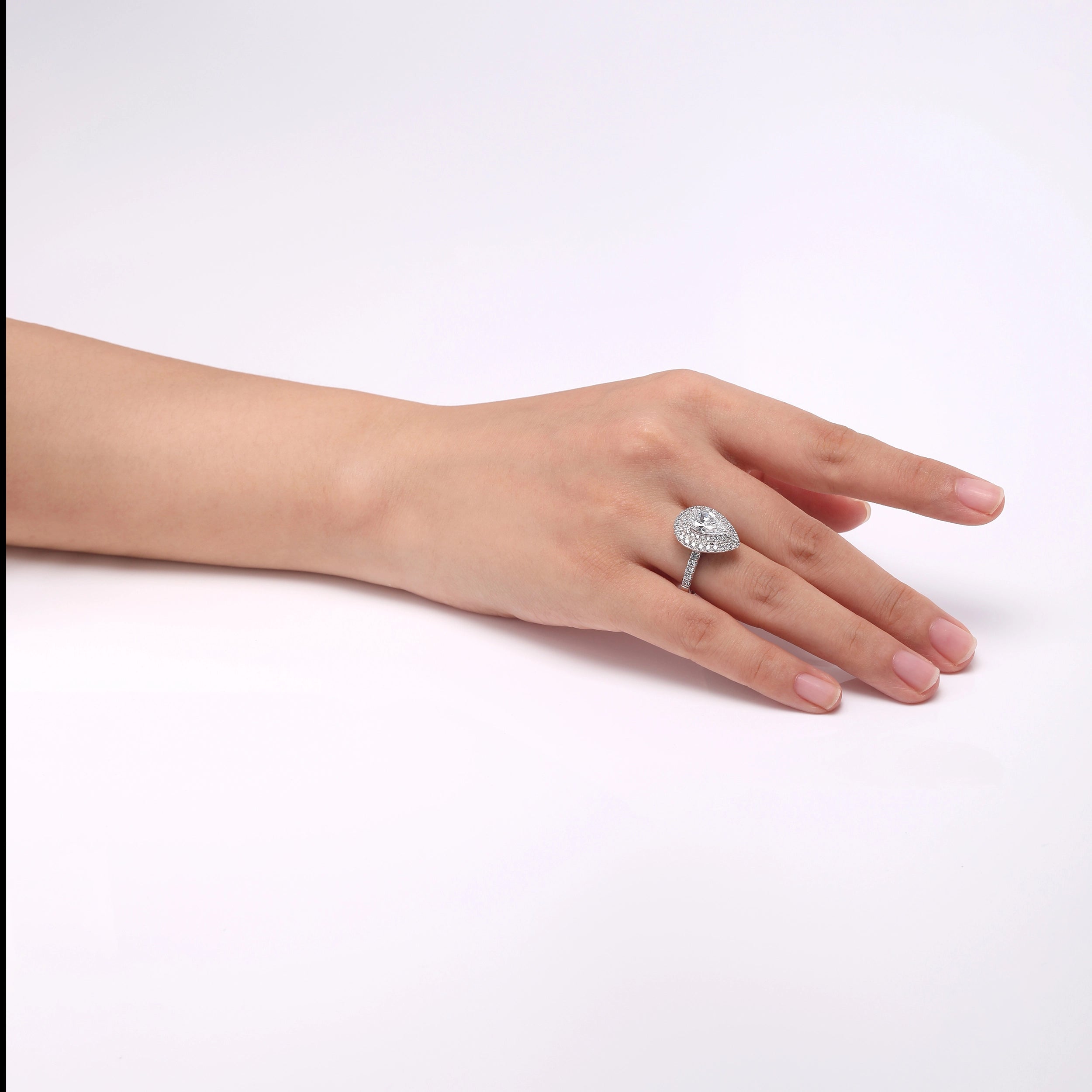 Precious Pear: Lab-Grown Teardrop Diamond Double Halo Ring